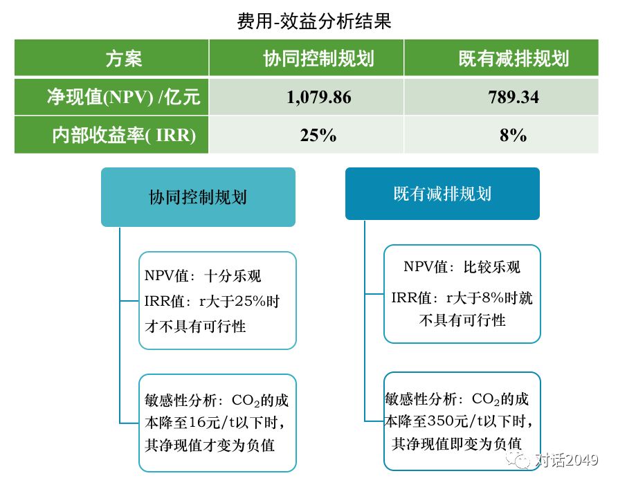 从费用-效益角度来看,协同控制方案的内部收益率高达25%,既有减排规划只有8%,经济指标大大优化。
