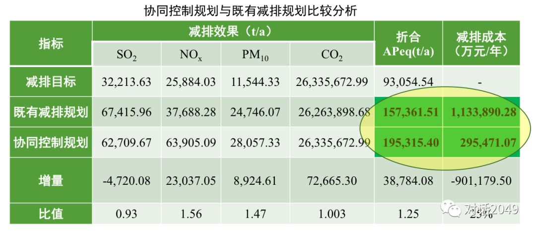 将协同控制路径规划与既有减排规划进行比较分析发现,协同控制规划的减排成本大大降低,而减排量没有受到任何影响。